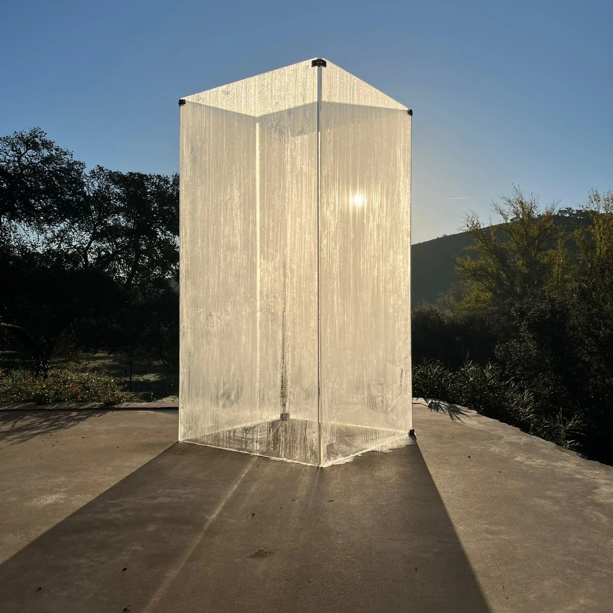 Visual designer Sarah Eechaut created a box, a microclimate made of glass, a very pure design of four glass walls, connected with our hitch-tools. In which people arrange themselves and are portrayed in family, in couple or alone. The box is an interplay of light, environment and framing. The transparent structure leads to surprising and intimate images of the interaction in the narrow space.
